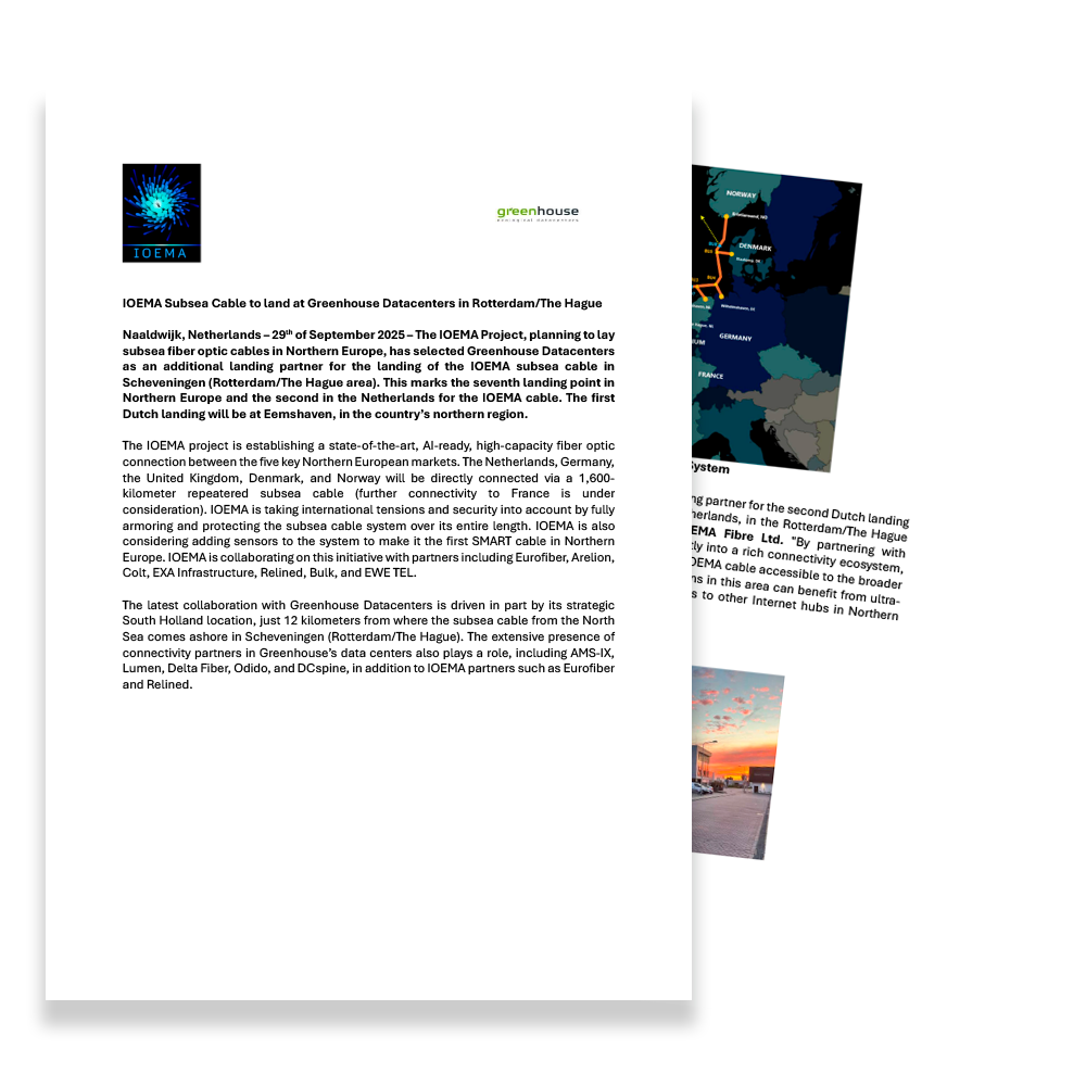 IOEMA Subsea Cable to land at Greenhouse Datacenters in Rotterdam/The Hague